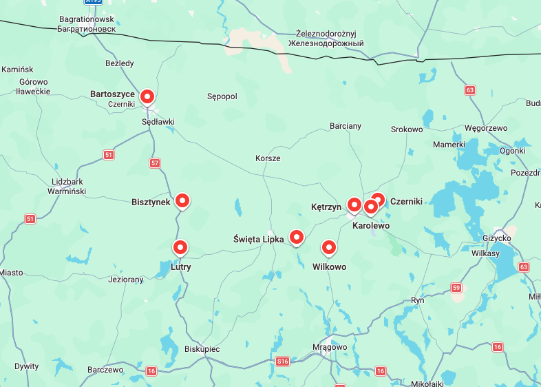 17:20 Kętrzyn – 6 km/10 min – 17:30 Karolewo Müller 30 min